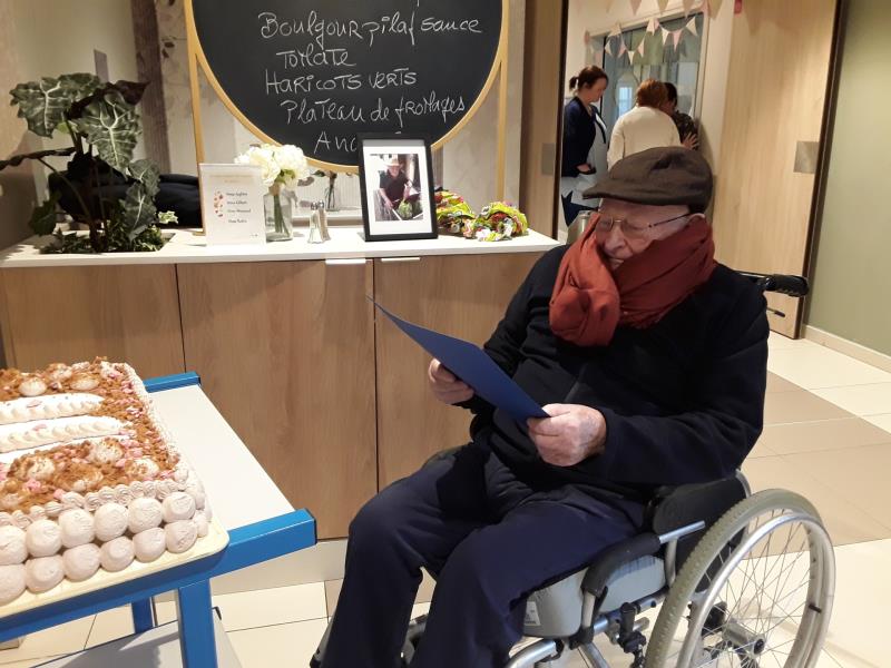 Le 22/01/2024 nous avons fêté un évènement très spécial : les 100 ans d'un de nos résidents, Monsieur M.... ! une journée incroyable très festive remplie de joie, cadeaux champagne sous des airs d'accordéon.