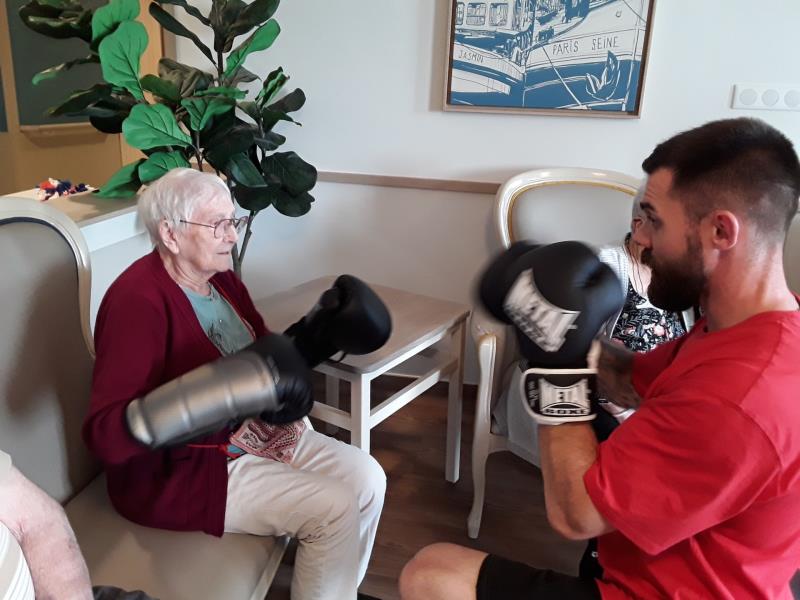 Ces derniers mois sont marqué par les jeux olympiques et les activités physiques , pour le plus grand bonheur de tous ! Nous avons réalisé diverses épreuves dans le cadre du festival de la résidence sur le thème des olympiades avec au programme : salariés, résidents et familles se sont parés de leurs plus belles tenues de sport et ont participé à divers ateliers tels que des ateliers boxe, du volley, du lancer de hache, du bowling, de la pétanque... avec remise des médailles en fin de journée pour tous nos sportifs!